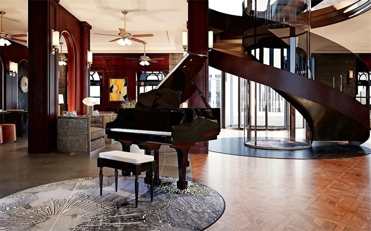 陈列在一旁的钢琴,可以作为临时表演使用,同时也让空间显得更加具有文艺情调。