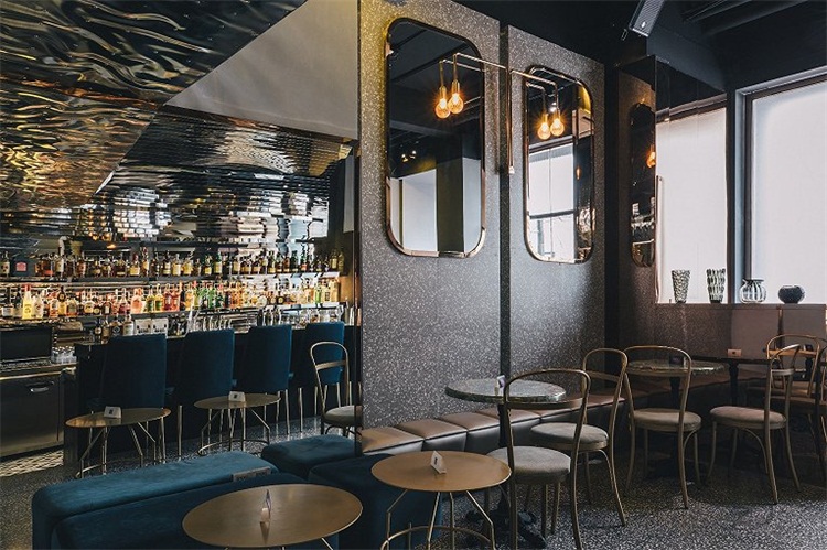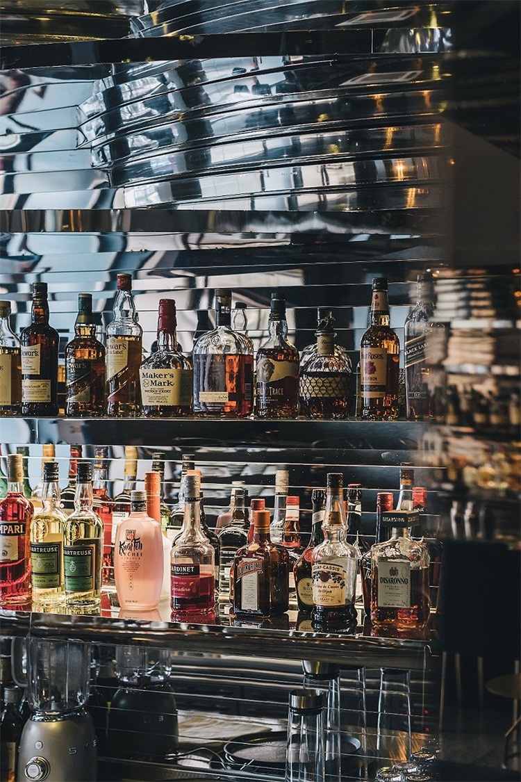 Binary作为店名,本身就包含着“双重的,二元的”这样一种含义,除了表面意思的解读,主理人更希望传达一种二元精神:经典中有自己的独特,传统中寻找自由,“反主流”意识在这间酒吧的设计细节里随处可见,比如大量金属和镜面的运用,通过这些反光材料的折射,光线抵达空间的每一处,酒墙仿佛拥抱了整个空间,产生特立独行的视觉氛围。并利用整体空间的层高在中心区设立了一个“太空舱”的小夹层,贯穿前场调酒吧和后场红酒吧的空间。