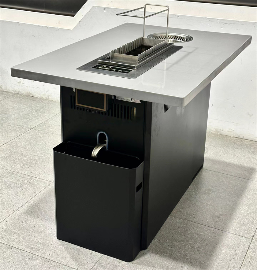 随着餐饮行业的不断创新,火锅与烧烤结合的经营模式越来越受欢迎。这款不锈钢自动翻转无烟火锅烤串一体桌,集智能翻转、无烟排放、高效加热于一体,为自助烤串店、火锅烧烤自助餐厅、高端烤肉店提供全新的用餐体验。不仅提升出餐效率,还能优化用餐环境,让顾客享受更便捷、健康的美食体验。