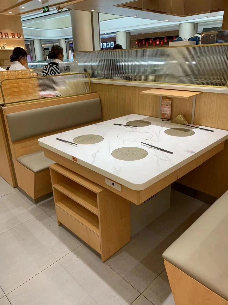 无烟火锅桌定做厂家海德利家具为您提供自助火锅店一人一锅大理石小火锅桌图片尺寸价格说明定做服务。